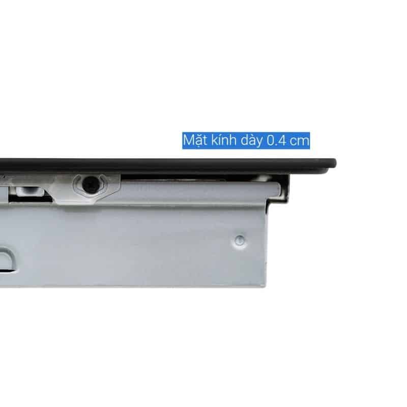 - Mặt bếp làm từ chất liệu kính Ceramic Schott Ceran (Đức) bóng sáng, có khả năng chịu lực, chịu nhiệt, chống va đập, làm sạch dễ dàng.